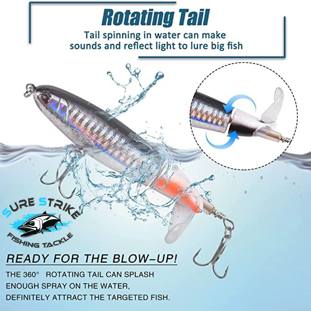 Our Whopper Plopper are fitted with ultra sharp black carbon hooks, these hooks offer ultra resistance against the corrosion and are specifically tailored to freshwater environments, this lure is known to agitate large catfish and bass amongst others into a strike!